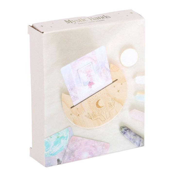 Display a daily tarot card reading with this wooden tarot card stand, allowing the meaning of the card to truly resonate throughout the day. Featuring a mystical hands design, it's sure to add an element of spiritual significance to any space.